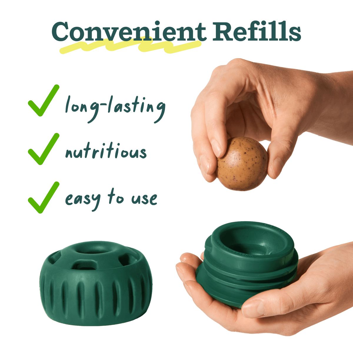 Our Calming Wellness Pops provide 20 to 40 minutes of play, with the added benefit of natural calming agents like passion flower, tryptophan, and magnesium to lower stress during thunderstorms, fireworks, and travel days.