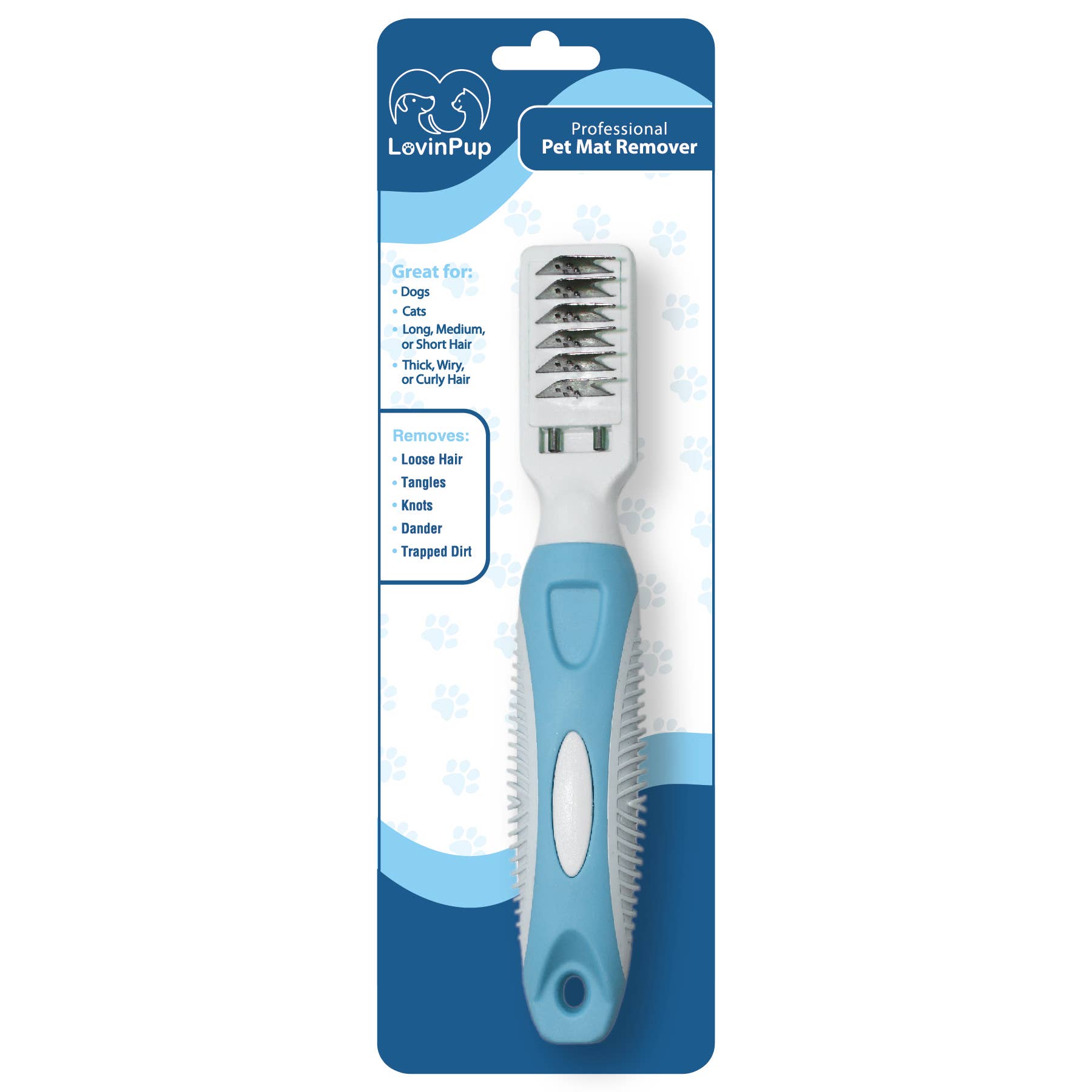 Removes stubborn matted fur with high-quality stainless steel. Our Mat remover effectively removes matted fur, tangles, knots, loose hair, dirt and dander all while being gentle on the skin. Your pet will feel refreshed! Unique trappers trap matted hair effectively. Our tool also massages your pet. This increases circulation, leaving your furry friend with a soft, shiny coat. Designed for your comfort, this dematting comb comes with a soft comfort grip on a 4.5-inch handle. No matter how long you brush your pet’s hair, you won’t strain your hands and wrists. Works for dogs and cats with all hair types. There's no tangle our comb can't handle!